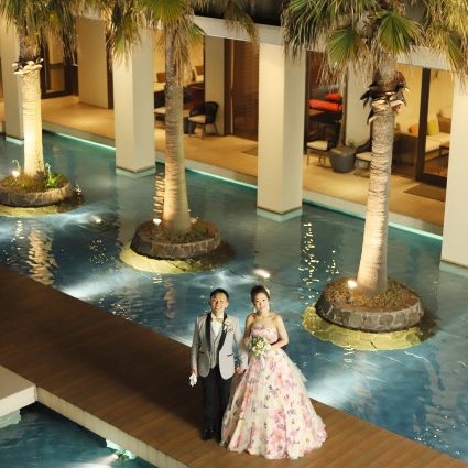 夕方からの式だったため、昼と夜のライトアップされたアクアテラスの両方で記念撮影ができ、とても綺麗で嬉しかったです!