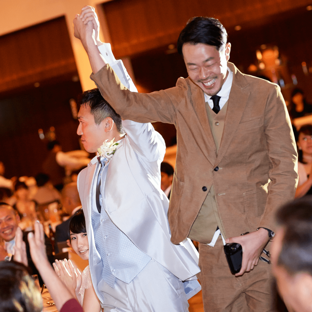 ◆宴の最後は会場全員で一体となり締めくくりたく、万歳三唱を行いました。花嫁の手紙からクライマックスにかけて涙を誘うシーンが続きましたが、万歳三唱で最後はみんな笑顔で終わることができ、私達らしい締めになりました。