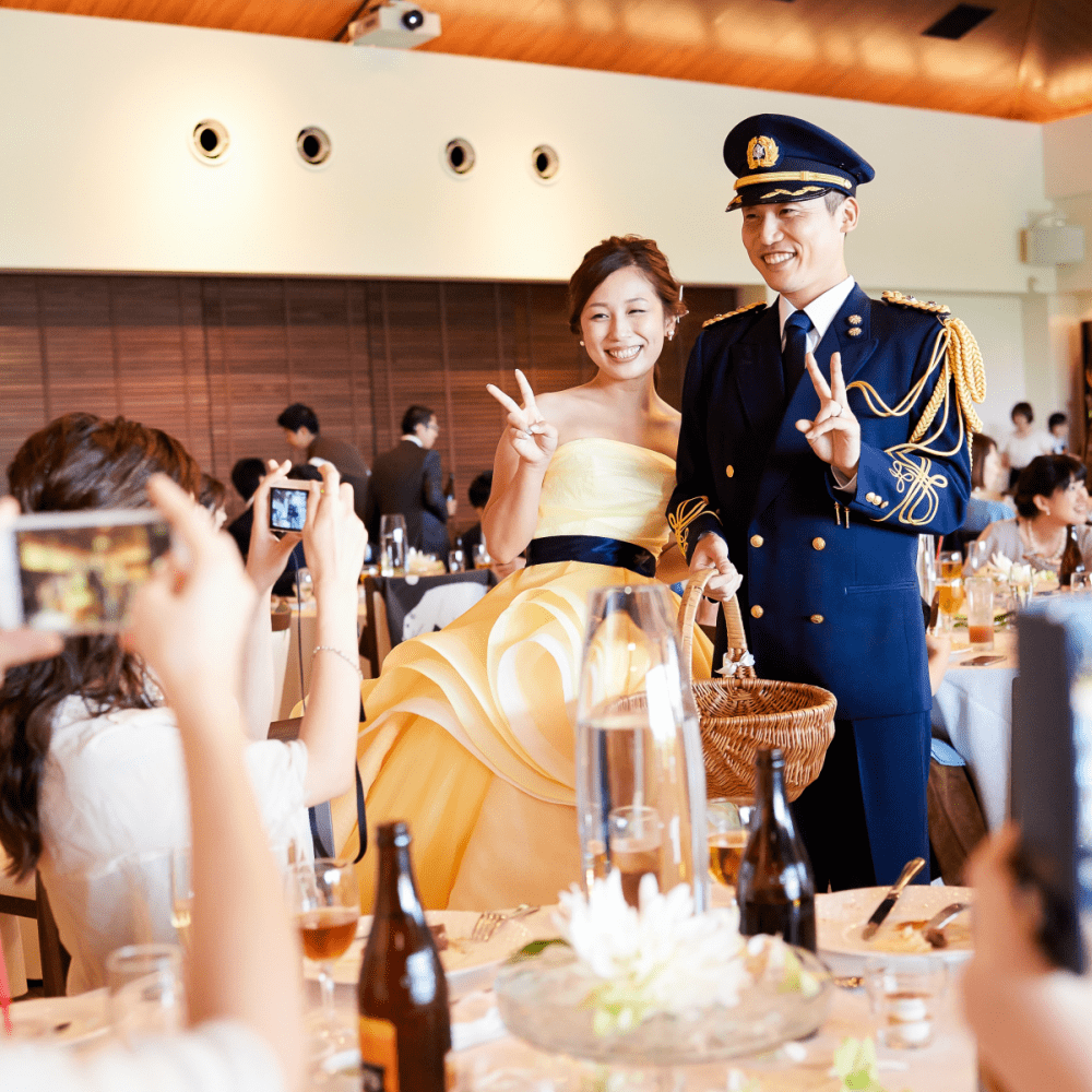 ◆卓数も多く、テーブルラウンドに時間がかかることが予想されていましたが、どうしてもゲストの方々にご挨拶がしたいと相談したところ、明るい中でできてゲストが一体となって最後まで楽しめるアクアパーティという演出を提案していただきました。おかげで、ラウンドごとにゲストの表情も見ることができ、素敵な時間を過ごせました!