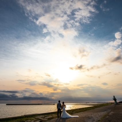 まずは、海辺でのサンセットをバックにしたロケーション前撮り