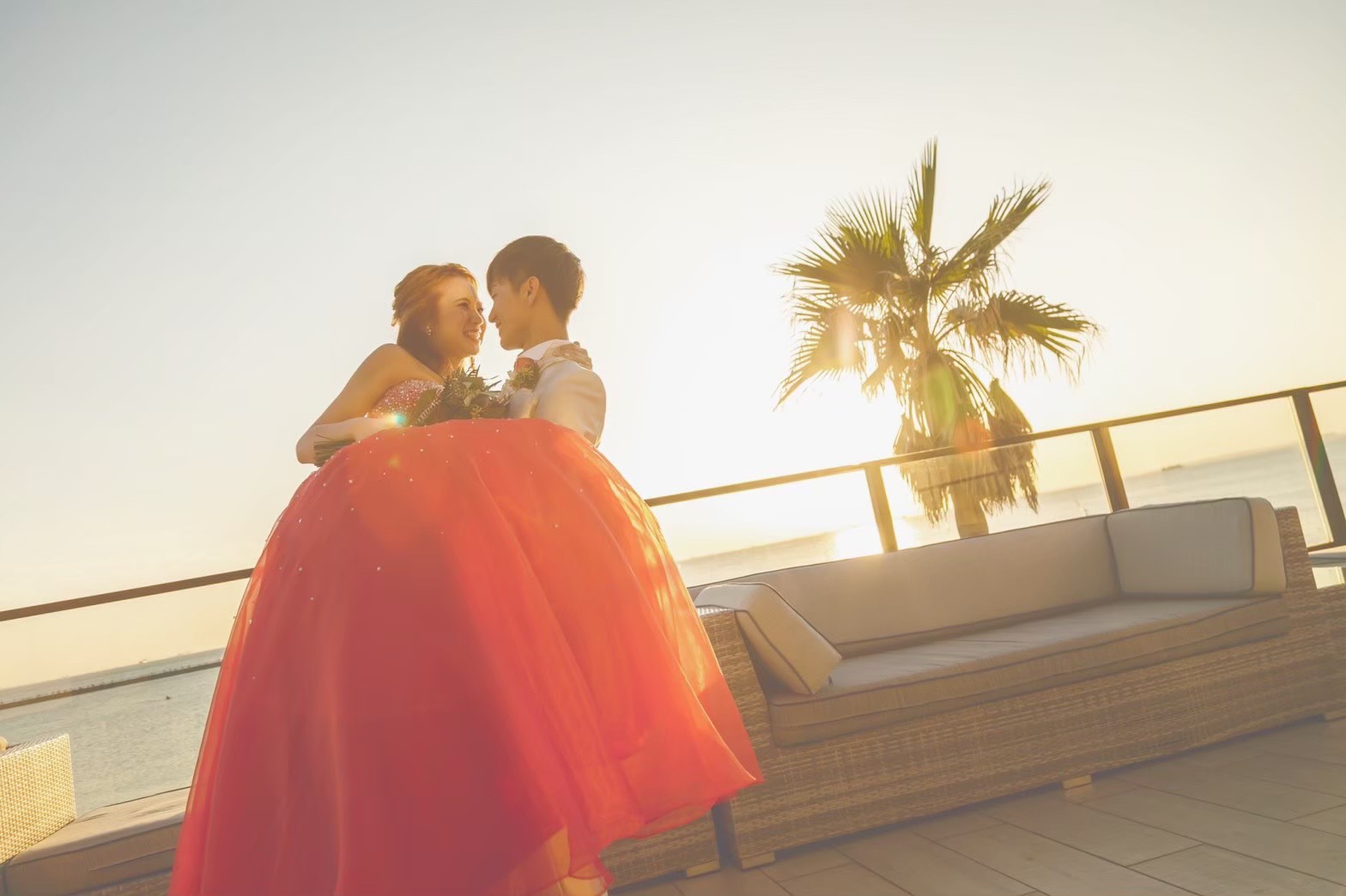 サンセットの時間に合わせて前撮りを行うことも可能です!!