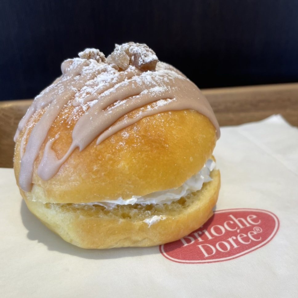 ブリオッシュの生地にマロングラッセとデザートホイップを挟んで