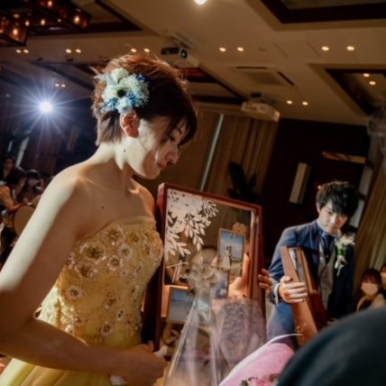 おふたりが届けたいこれまでの思い出の写真を入れ、