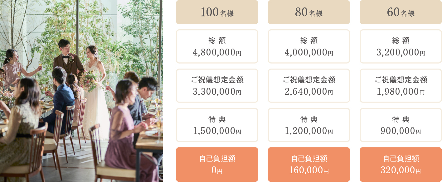 結婚式のご招待人数によってご祝儀だけで憧れのご結婚式を叶える事も可能。