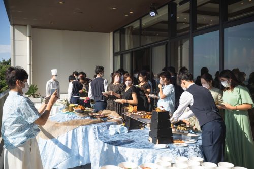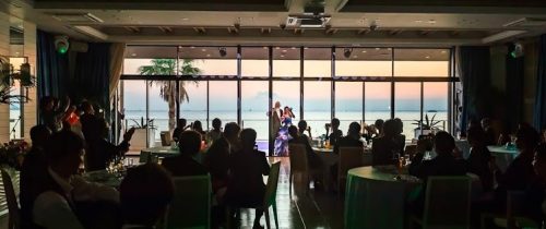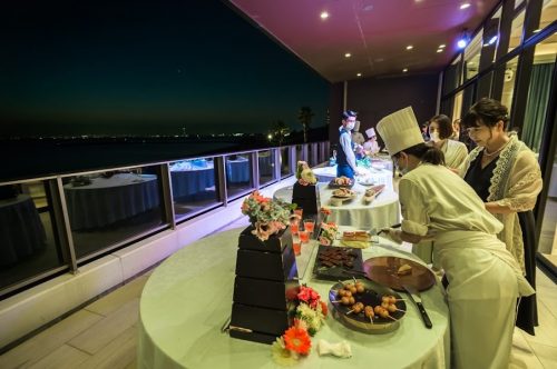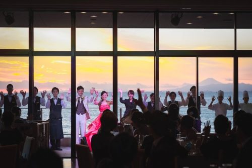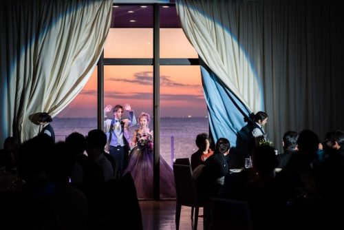 \海をバックにテラスからのご入場/