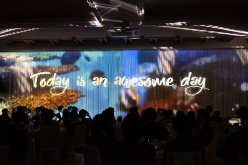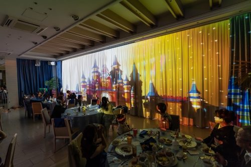 プロジェクションマッピングの中におふたりのお写真を取り入れたりなど