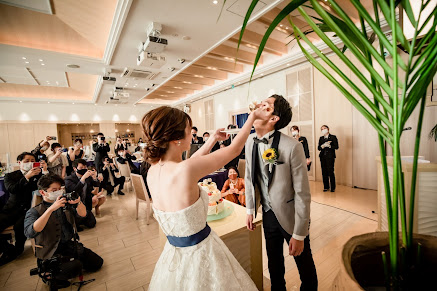 新郎新婦様がお互いにケーキを食べさせ合うシーンですが、