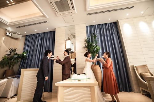 おふたりだけのシーンにするのではなく、大切な誰かと一緒にケーキを分かち合うのもアイデアのひとつ!