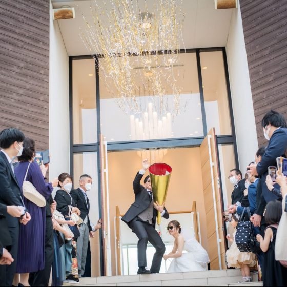 フラワーシャワーの時にはビッククラッカーでサプライズ演出をしたり、