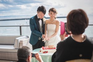 テラスに出て、ケーキ入刀をしたり