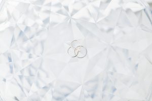 お二人の結婚指輪と、婚約指輪をそっと置いた一枚。