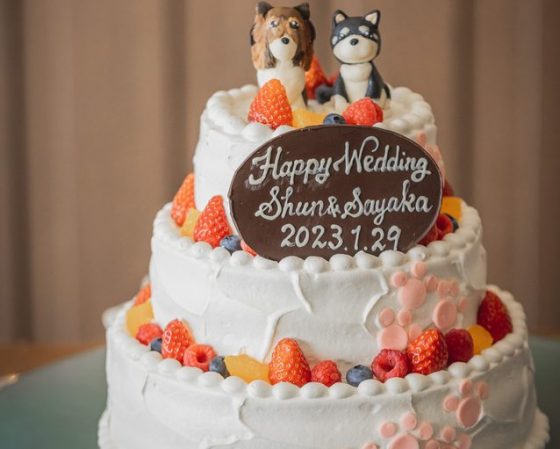 そしておふたりの大好きな愛犬たちが乗ったオリジナルケーキに入刀!