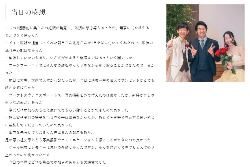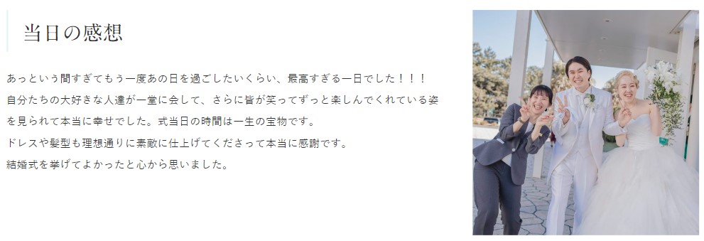 本日はぜひ皆様にもご覧いただきたい、スマイルを挙げられた新郎様新婦様のお声のご紹介です。