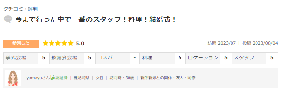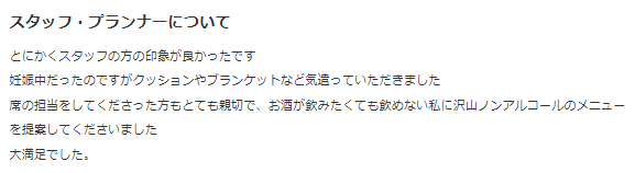 本日は多くのクチコミの中から一部をご紹介させていただきます!