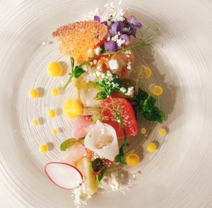 お皿が運ばれたゲストは芸術のようなフレンチの見た目に