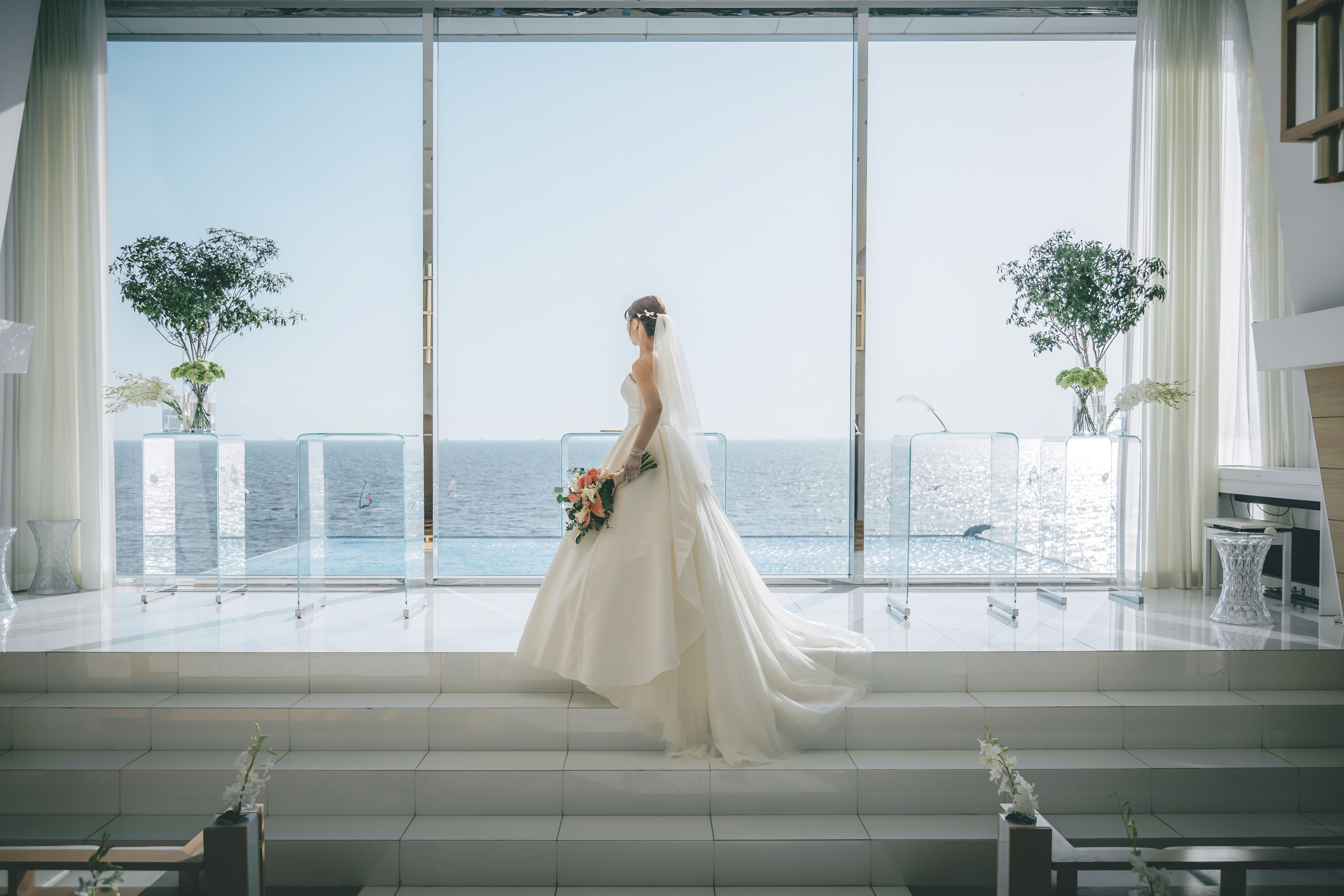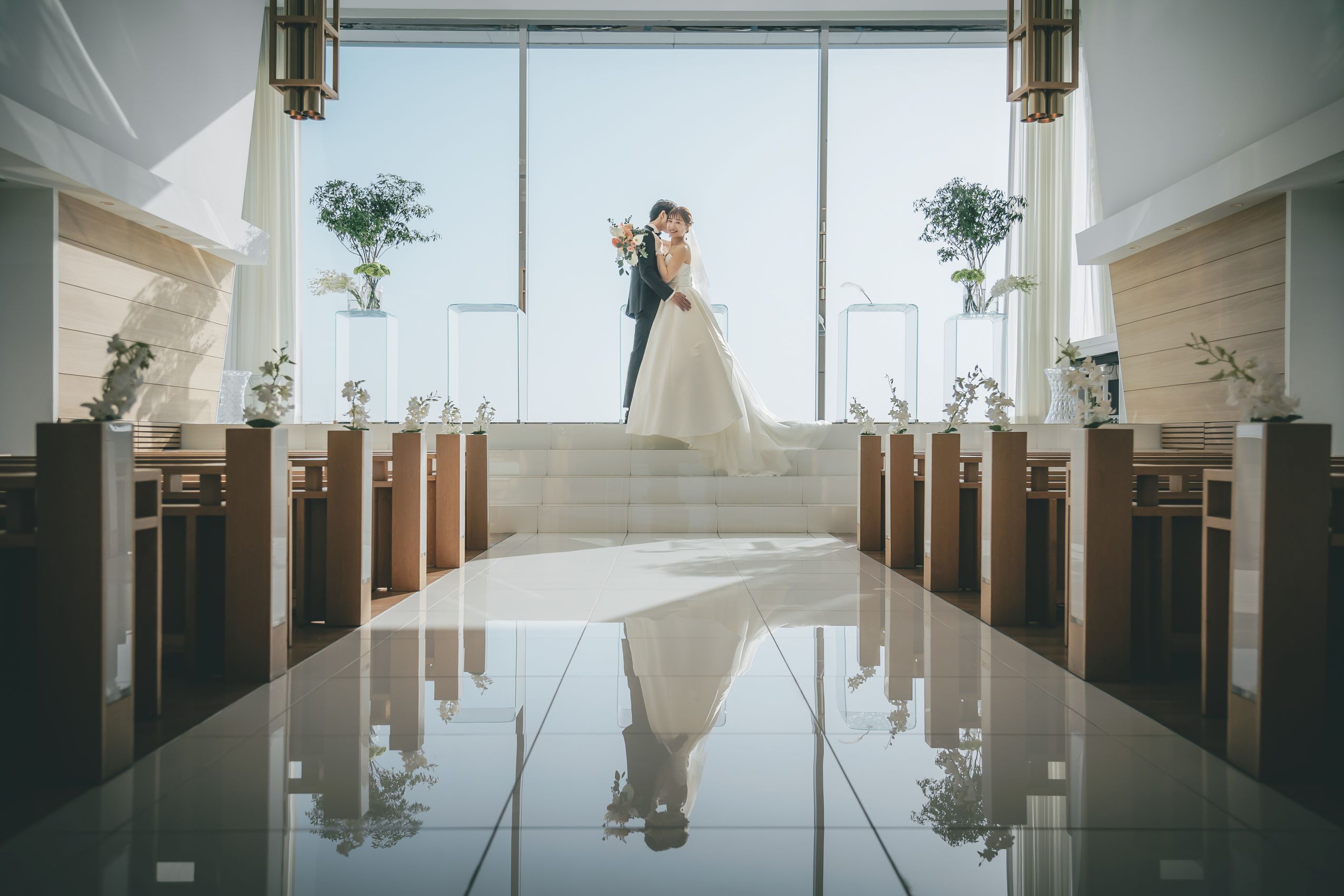 美しい新郎様新婦様の姿が反射されます