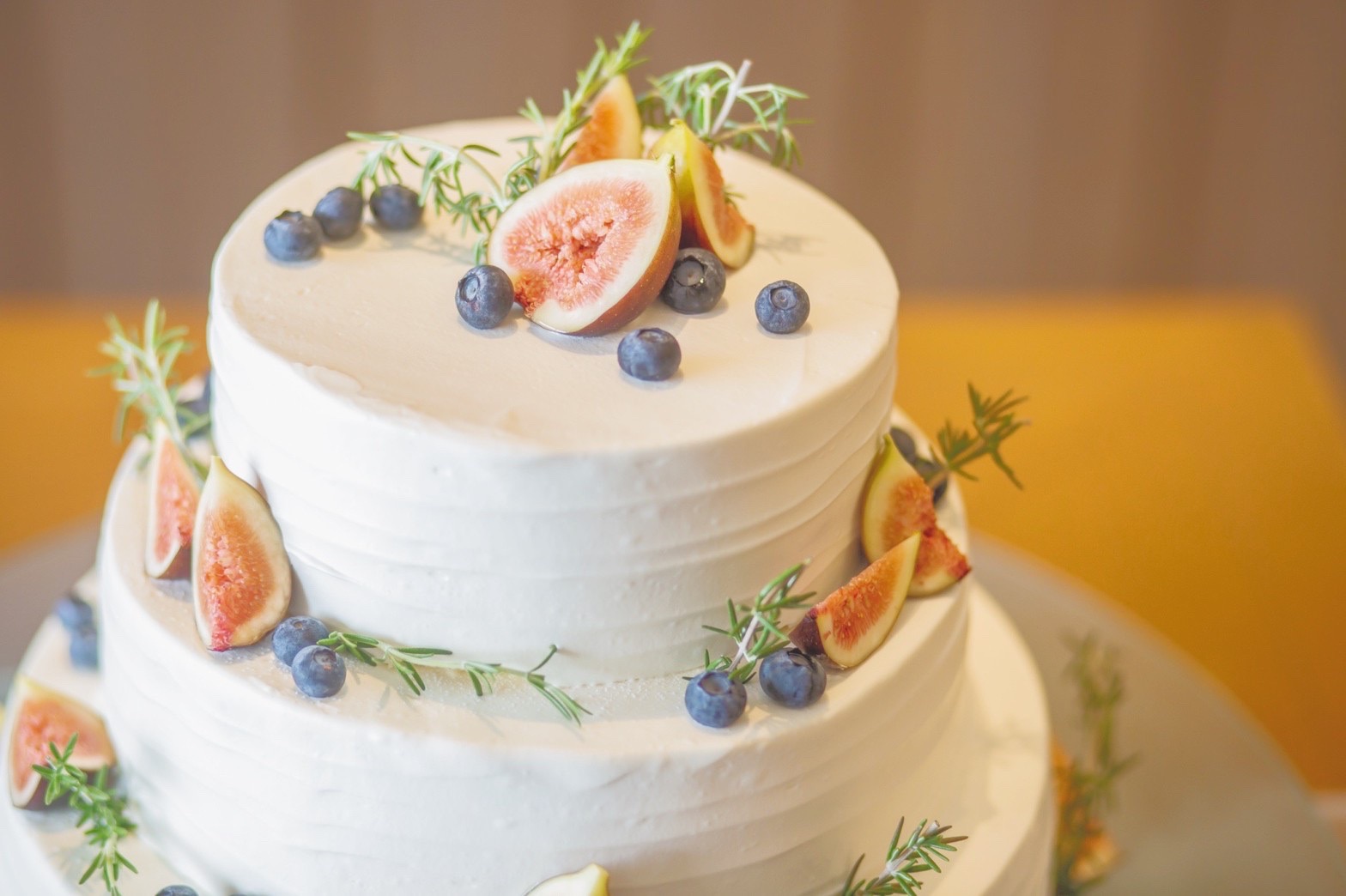 披露宴のワンポイントアイテムになるウェディングケーキも。