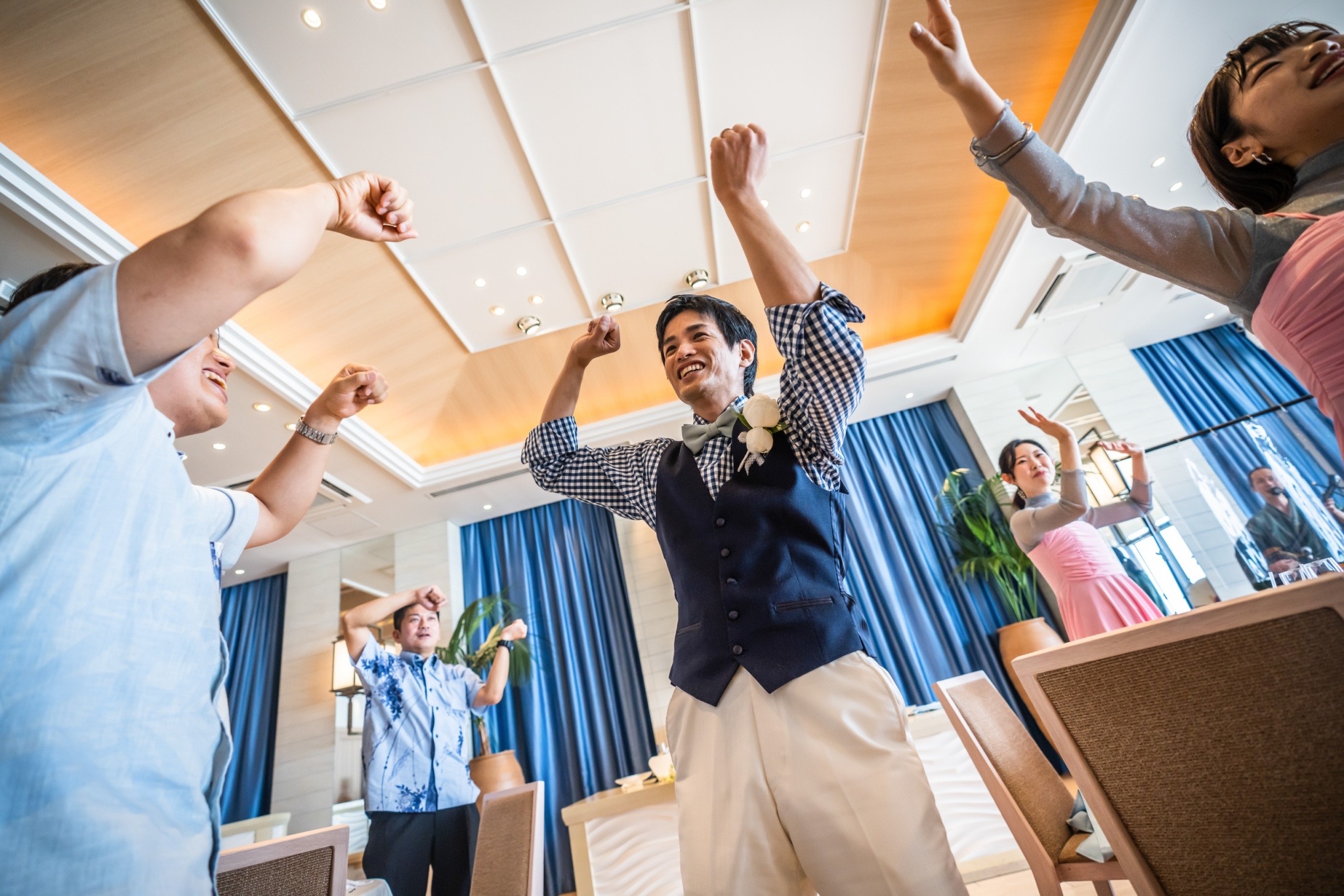 そしてご披露宴の途中では、沖縄特有の踊りである「カチャーシー」を皆で楽しみました。
