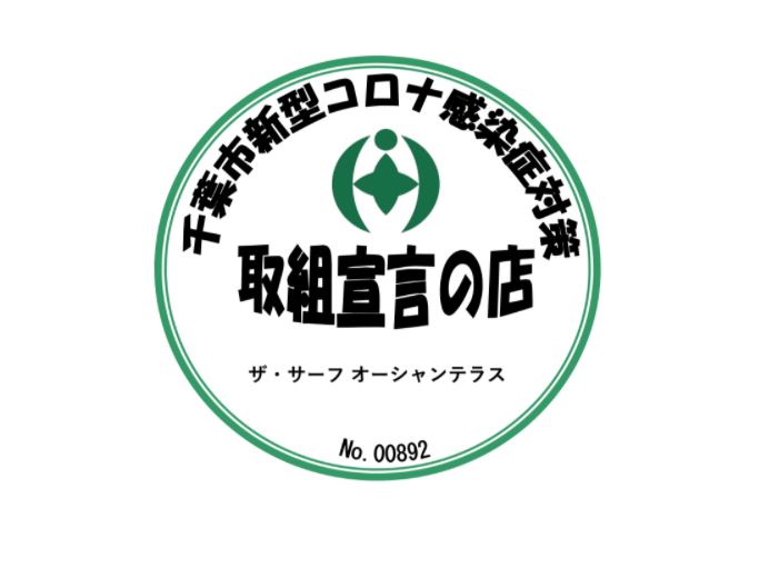 THE SURF OCEAN TERRACEでは千葉市が推奨する「千葉市新型コロナウイルス感染症対策取組宣言のお店」に登録させていただきました。