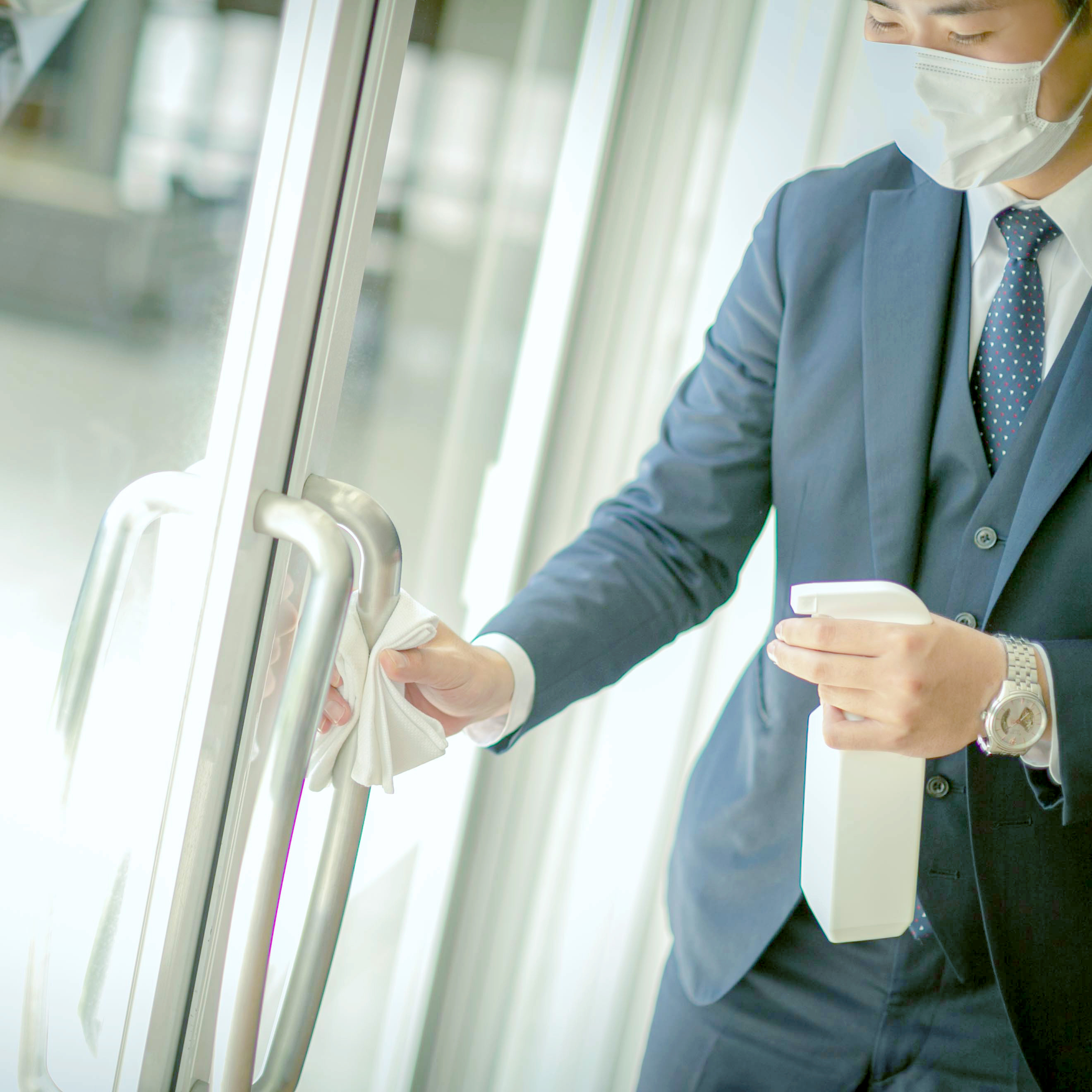 その他、手洗いおよび消毒の実施、出退勤時・業務中のマスク着用、海外および感染リスクが高い場所への訪問禁止等を行ないます。