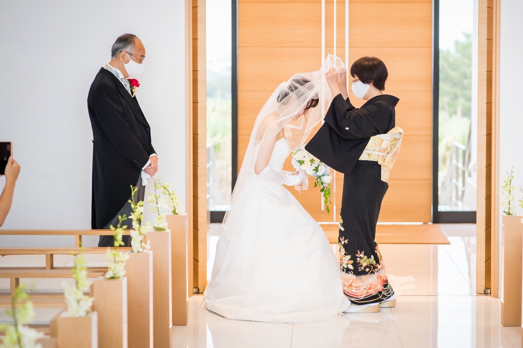 花嫁最後の身支度として、大切な方に「ベール」をおろしていただきます。