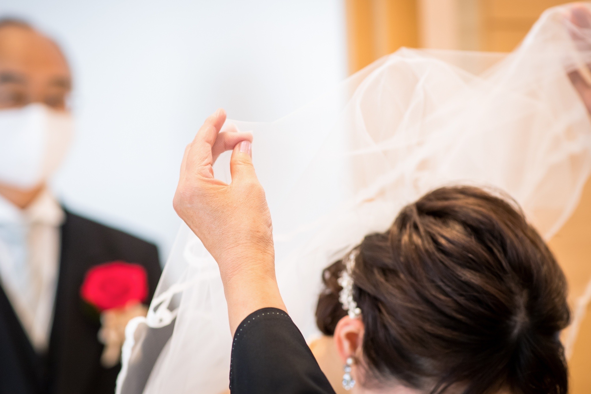 花嫁最後の身支度として、大切な方に「ベール」をおろしていただきます。