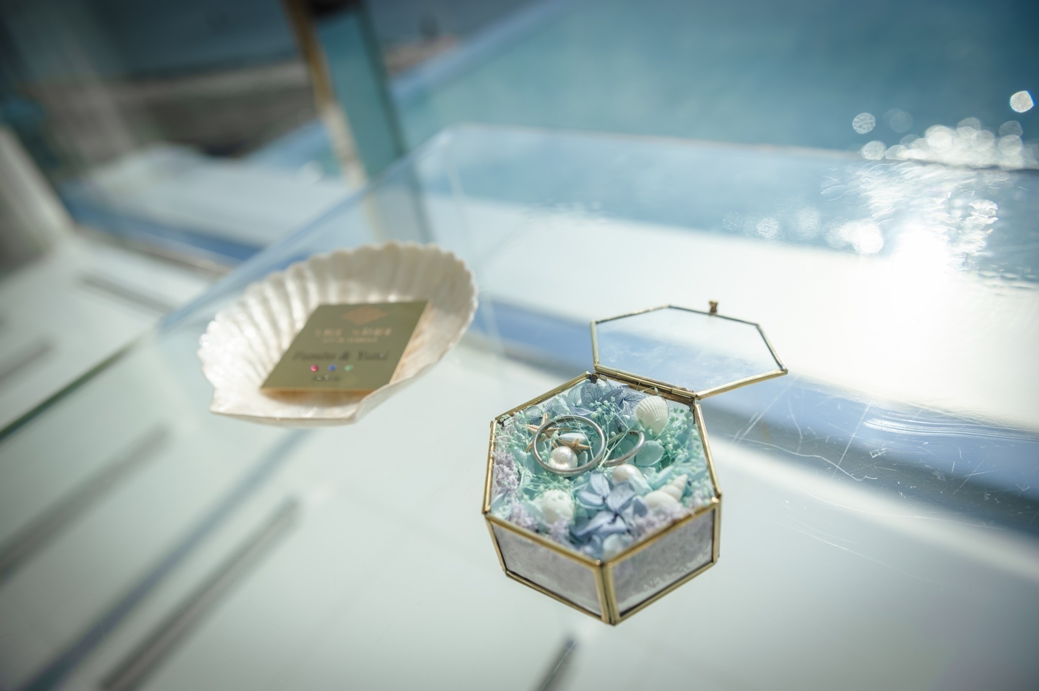 海の挙式会場とマッチしてとてもおしゃれですね!