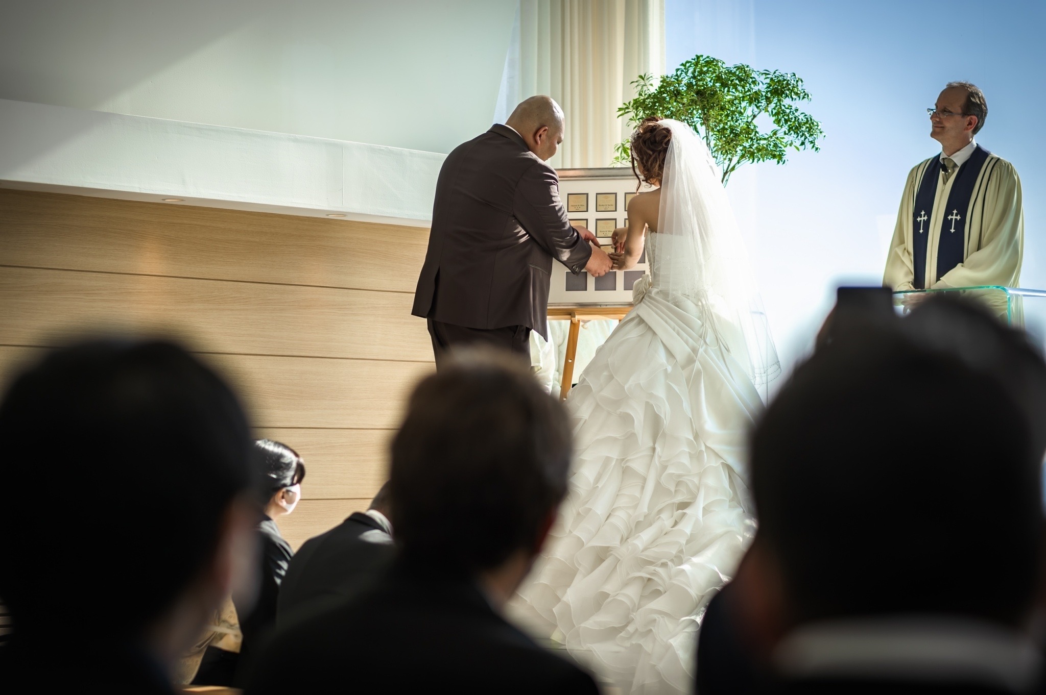 お二人オリジナルのプレートを挙式中に額縁にはめ込み