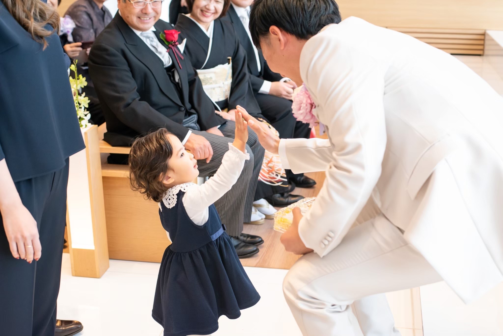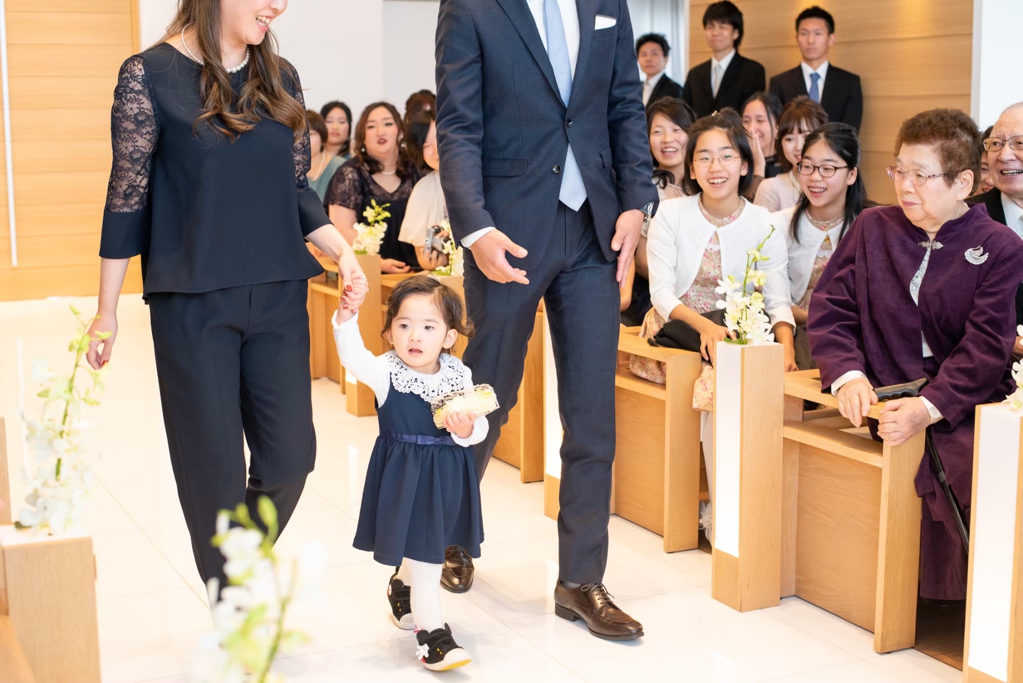 お子様の登場により、全体的に和やかな雰囲気の挙式となりました。