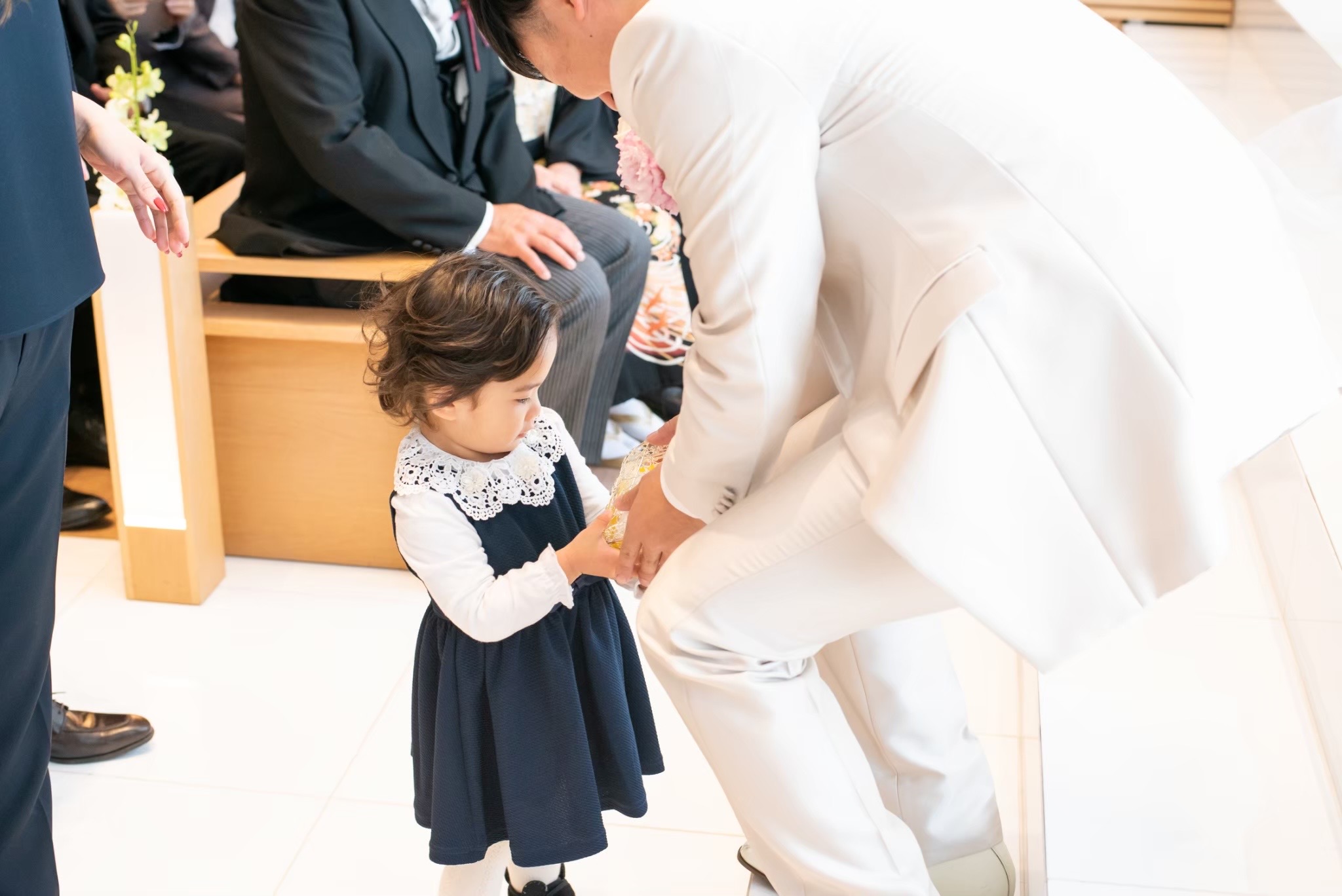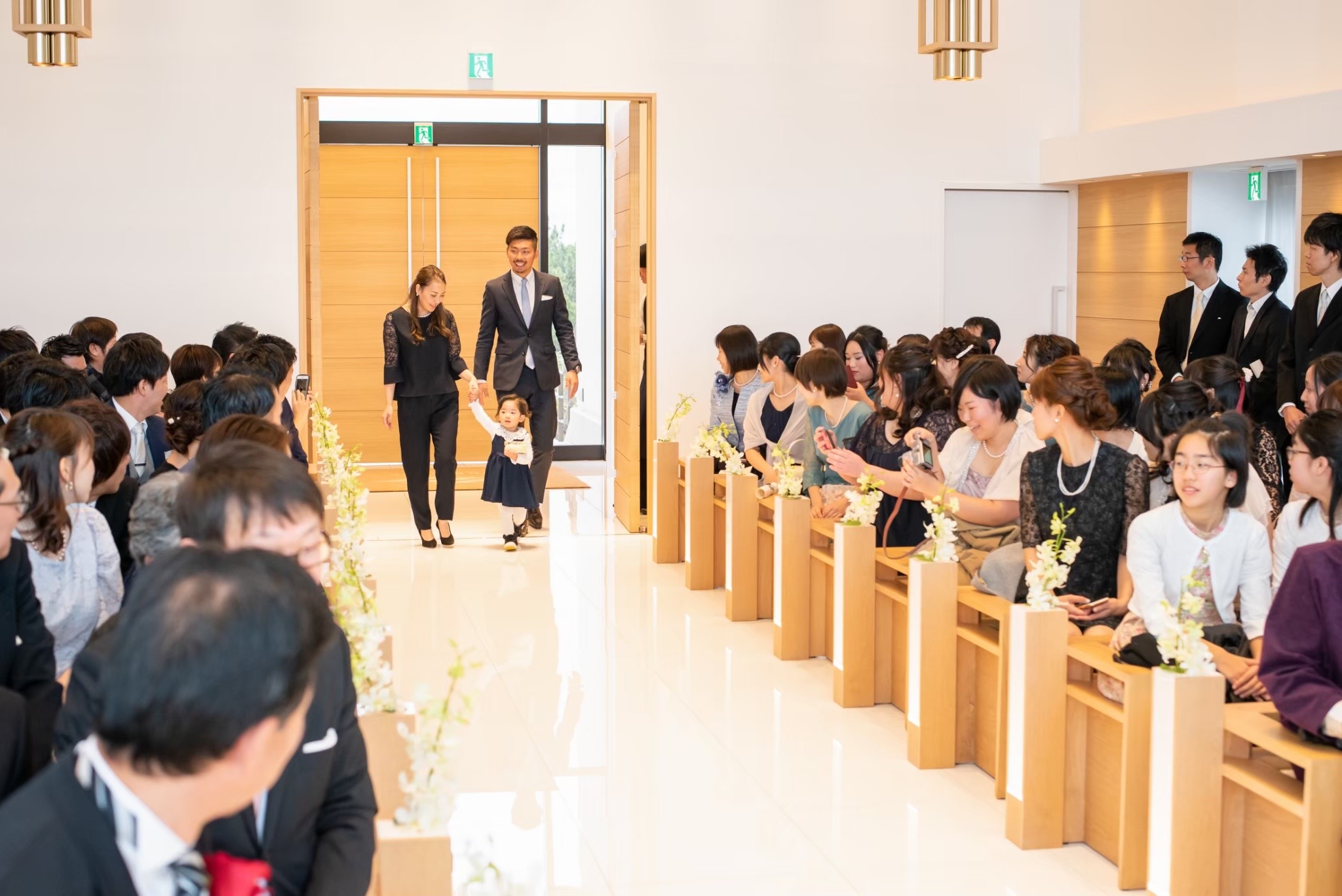 お子様の登場により、全体的に和やかな雰囲気の挙式となりました。
