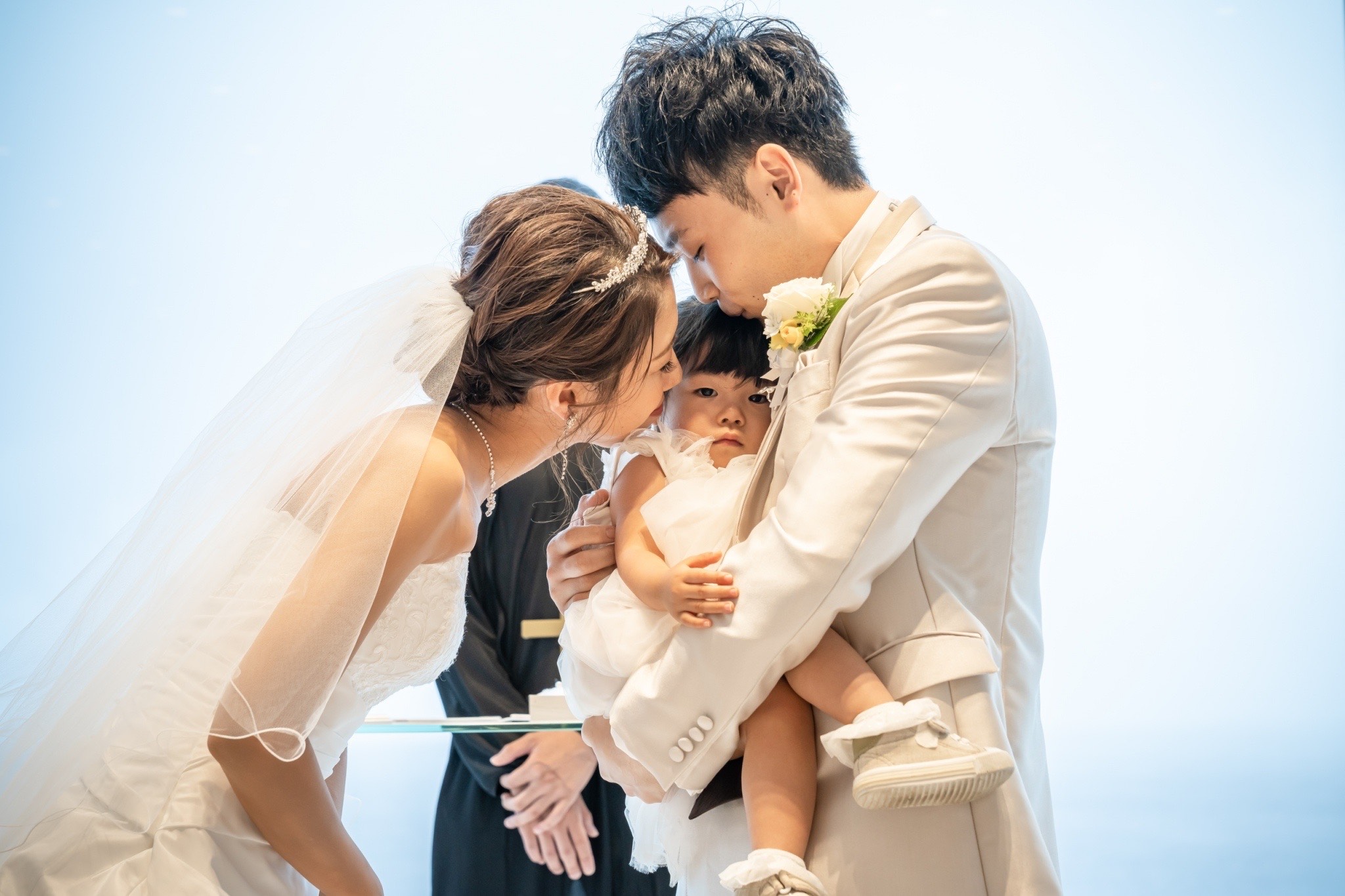お写真のように、ウェディングキスをお子様を挟んで行ったり…
