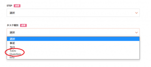 ④タスク種別のプルダウンより「ToDo」もしくは「Question」を選択⇒登録