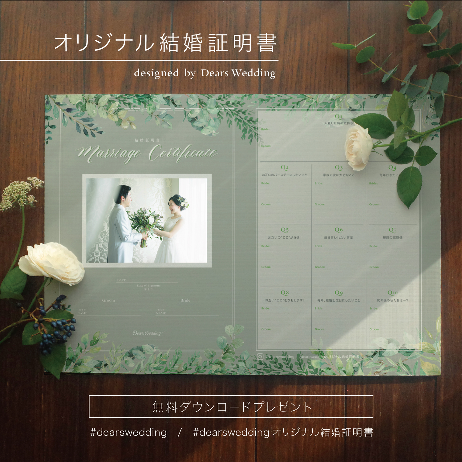 今回Dears Weddingではオリジナル結婚証明書を作成しました!