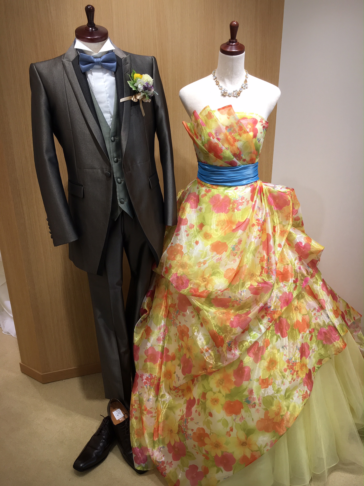 梅雨明けが待ち遠しい本日は夏にぴったりなカラードレスのご紹介です! 淡いイエローベースに「オレン...