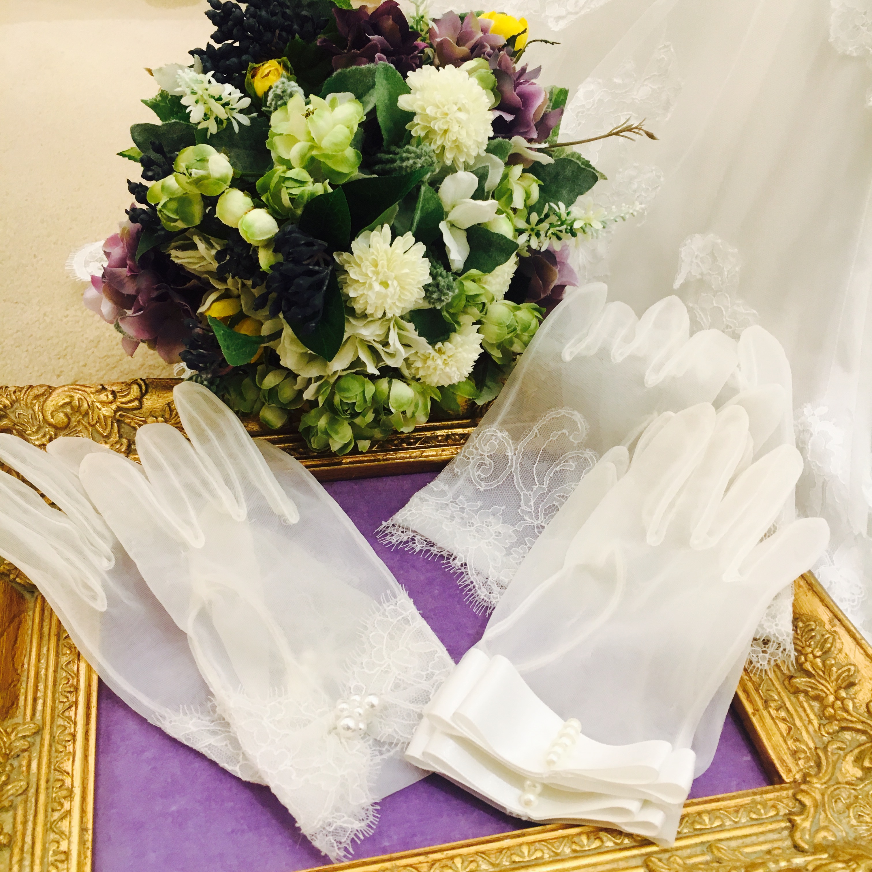 ◇ショートグローブのご紹介◇ オーガンジーの軽やかですけ感のある素材で 作られたショートグローブ。サテ...