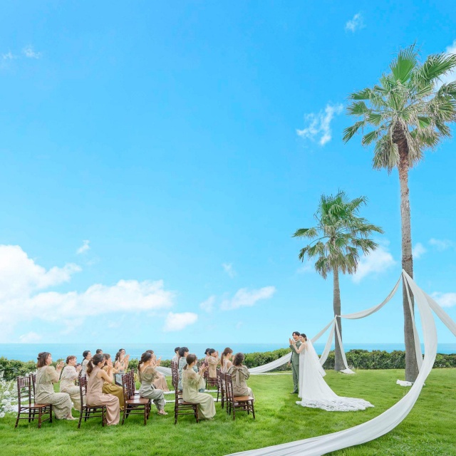 どこまでも続く蒼い海と空がおふたりとゲストの方々の心を解きほぐし、心地よい時間を彩ります。美しいロケーションの中、幸せに満ちたセレモニーをお迎えください。