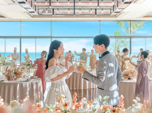 ゆったりとした敷地内に3つの棟を備え、洗練と気品に満ちたザ・サーフ オーシャンテラス。海まですぐでオーシャンビューを一望でき、海外リゾートのような特別なひと時をお過ごしいただける開放的なロケーションと多彩な演出など、おふたりらしさを形にした、オリジナリティあるパーティーをお愉しみください。