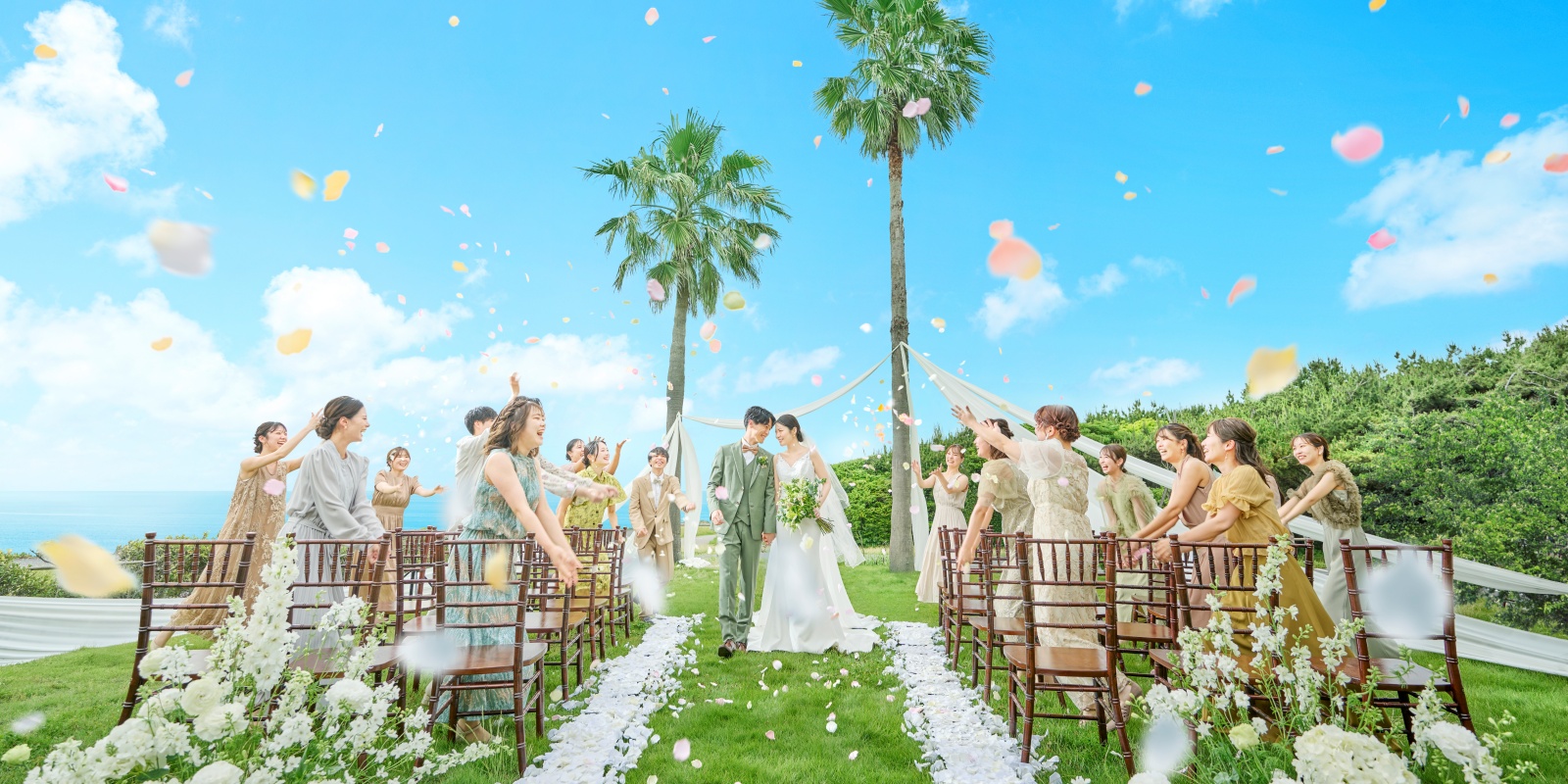 そして茜色に染まるサンセットと、刻一刻と変わる風景がおふたりの誓いを感動的に彩ります。