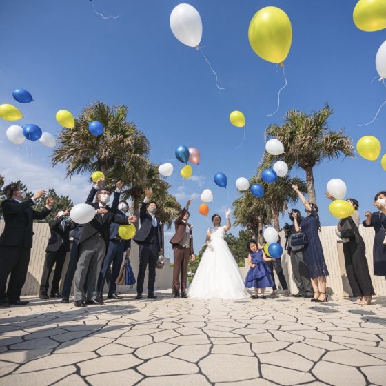 お天気にも恵まれて、大階段でのフェザーシャワーもバルーンリリースもできて