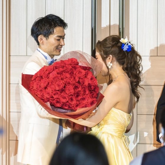 事前にドレスプランナーの浅野さんに協力してほしい!と連絡をし、当日サプライズでやまだっち〜!と呼んだ時のやまだっちの驚いた可愛い顔が忘れられません!