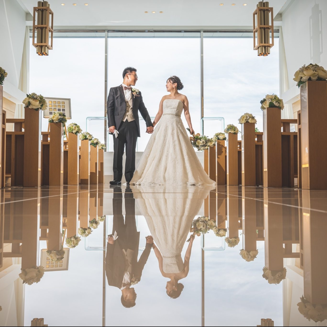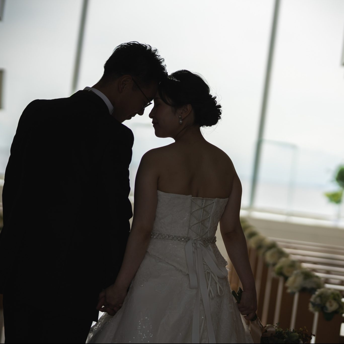 海が見える式場。見学の際は生憎の大雨でしたが、挙式会場のガラスの工夫など、
