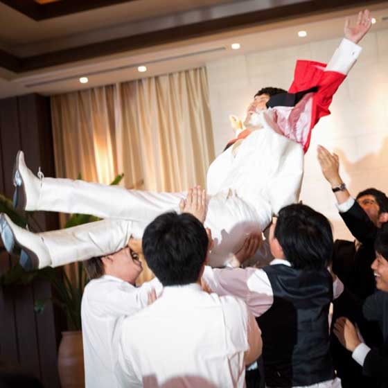 披露宴では両親のお手本バイトや胴上げでの中座など、