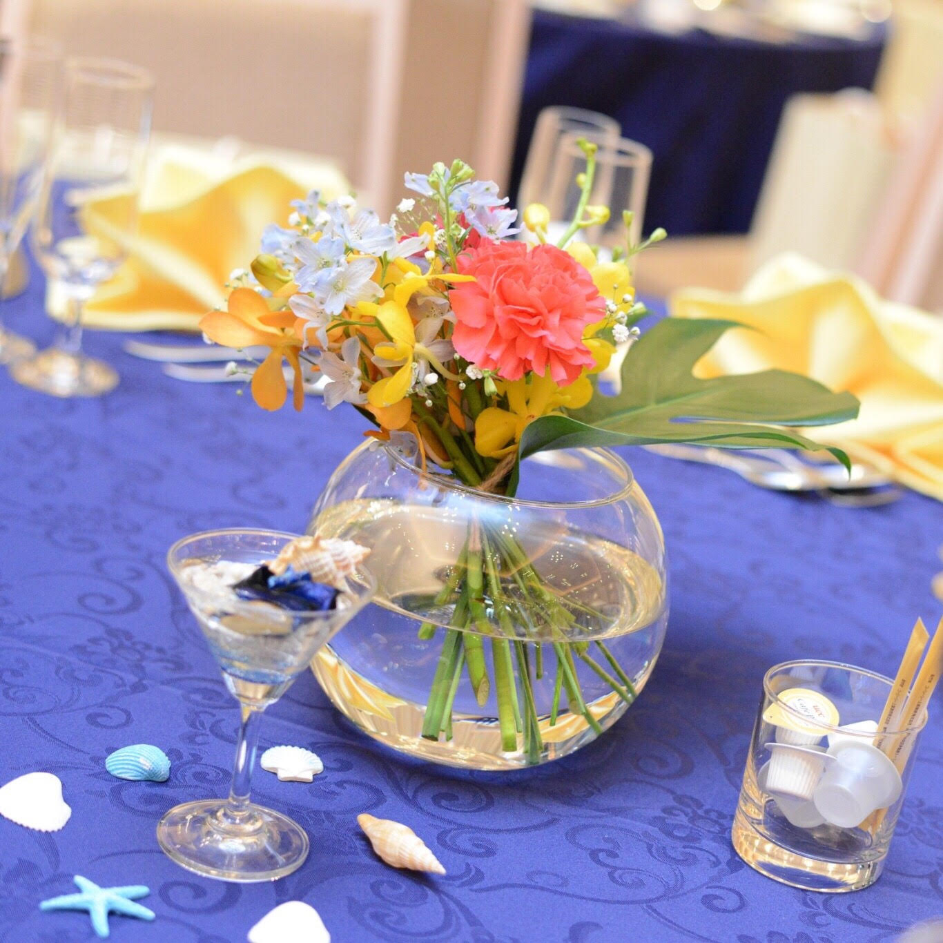 披露宴会場内容の基本的な色は大好きなブルー系に。
