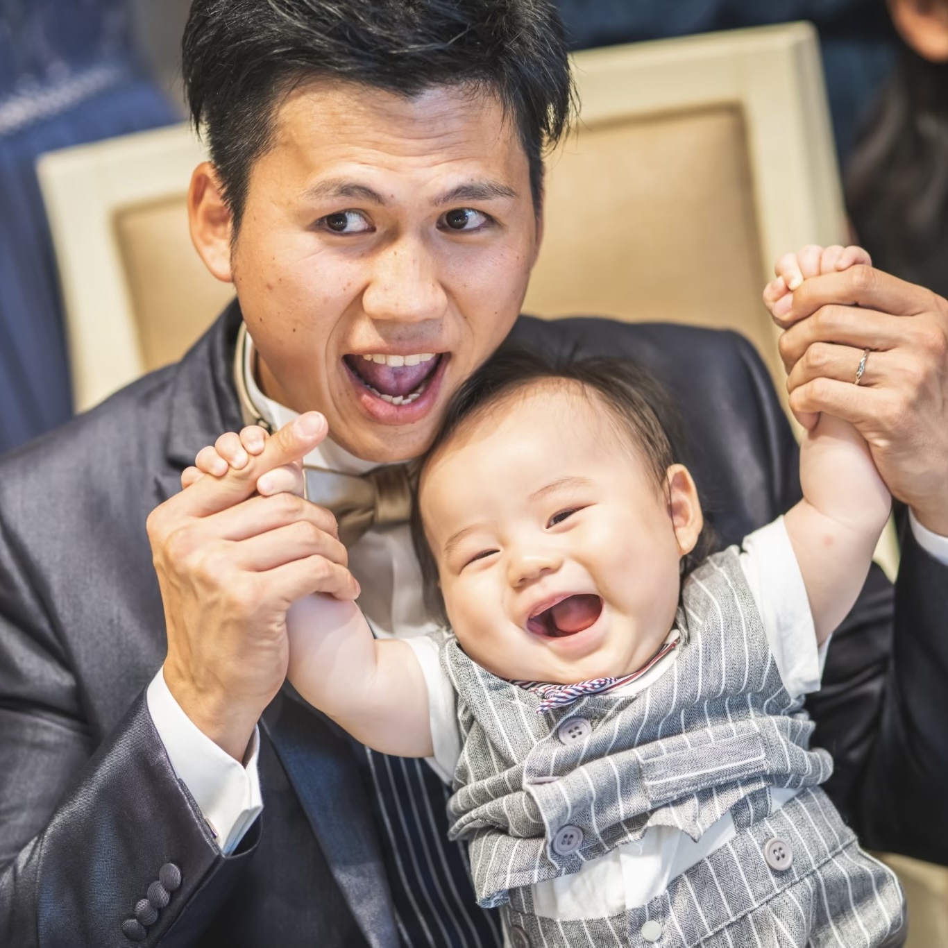 息子もしっかり起きて旦那の膝の上で参加していました。笑