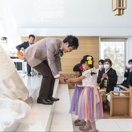 それもあって静かな挙式会場内が急に賑やかになり、