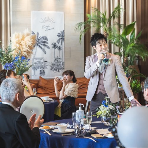 1番親しい友人にフランクな新郎の紹介と乾杯のみをお願いしました。
