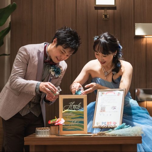 色は2人が好きな色、かつ、好きな海のイメージにぴったりのものを選びました。