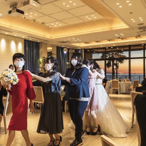 半年かけて、プランナーさんや映像・演出担当さん達と打ち合わせしてきた催しや演出が実現されて、楽しみながら決めたドレスも当日会場でとても華やかに綺麗に映えていて、自分達の好きな世界満たされた一日となりでとても幸せでした。