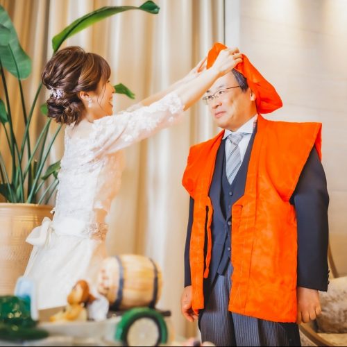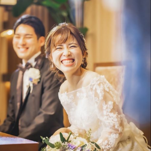 当日朝は今日が結婚式なのか?と実感が湧かなかったですが結婚式が始まってからは、本当に楽しくてあっという間の1日でした。改めて写真をみても2人ともずっと笑っていました(^^)
