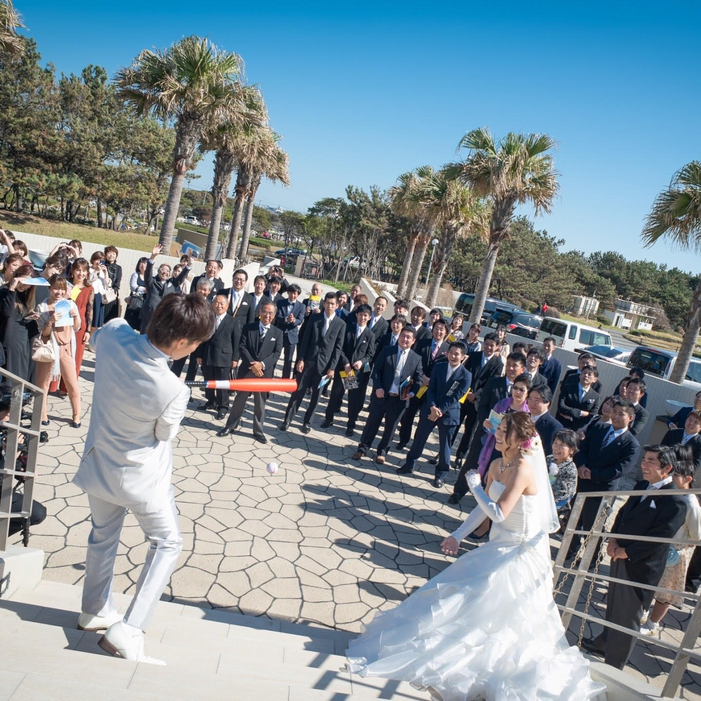 フラワーガールへの花冠のプレゼント、大階段でのクラッカーシャワーに野球トス!
